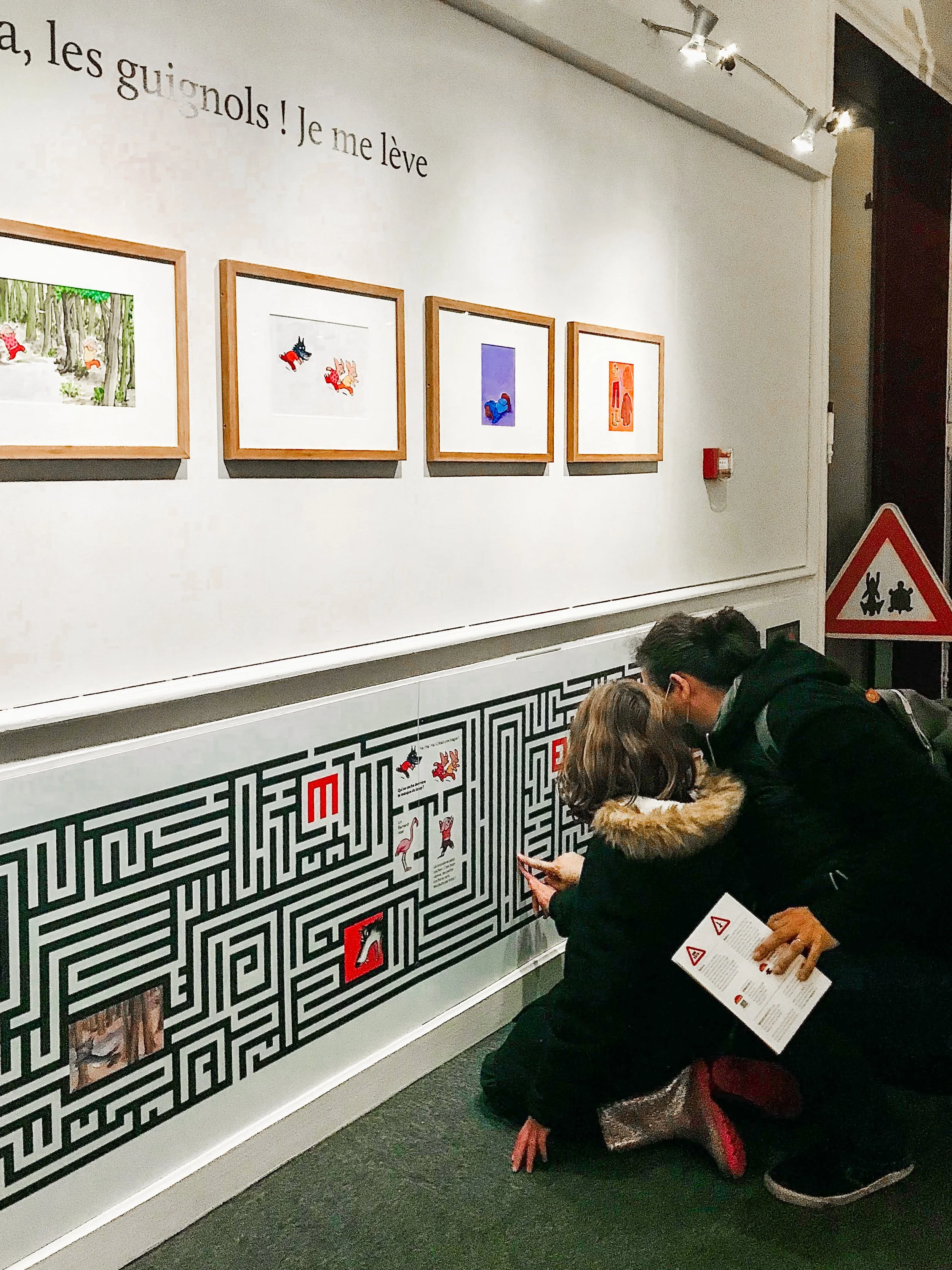 En collaboration avec l’équipe du Musée de l’Illustration Jeunesse (Mij) Tarmacadam s’est attaché à concevoir un projet scénographique, graphique pour retranscrire le travail de Mario Ramos en respectant son univers. Le dispositif évolue au fil des salles et de leurs thématiques en conservant une gamme chromatique inspiré par l’album “le roi, sa femme et le petit prince".