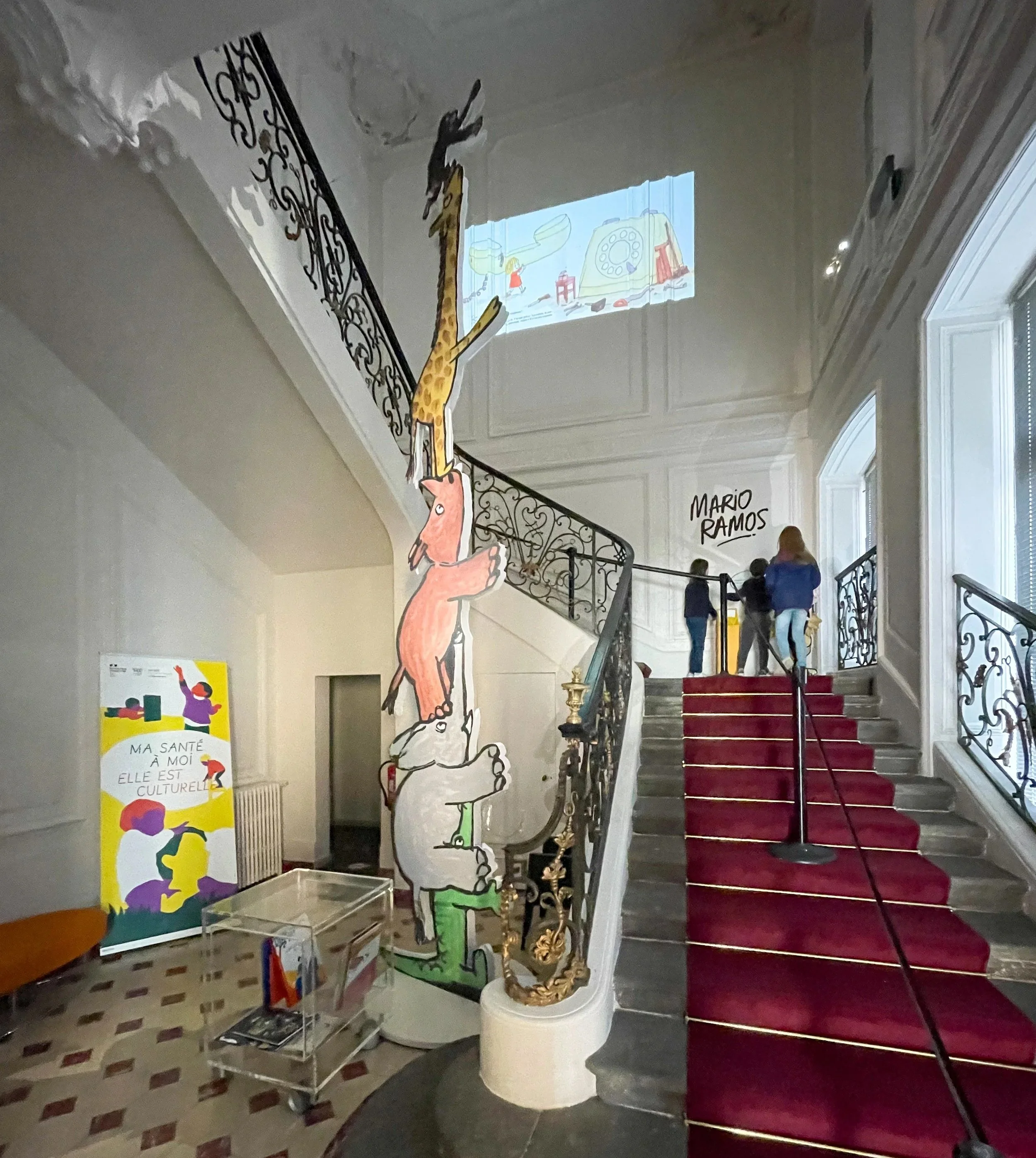 Mario Ramos était un être résolument sensible et irrévérencieux, doué d’un humour délicat et qui dénonçait dans ses albums toute forme d’exclusion et d’abus. L’exposition lui rend hommage. La scénographie permet au visiteur d’aller de surprise en surprise : de la salle du trône à celle où on marche au plafond, en passant par le lieu où chacun pourra se souvenir de « quand il était petit ». Le tout jalonné par des panneaux reprenant le code de la route revisité par Mario Ramos.