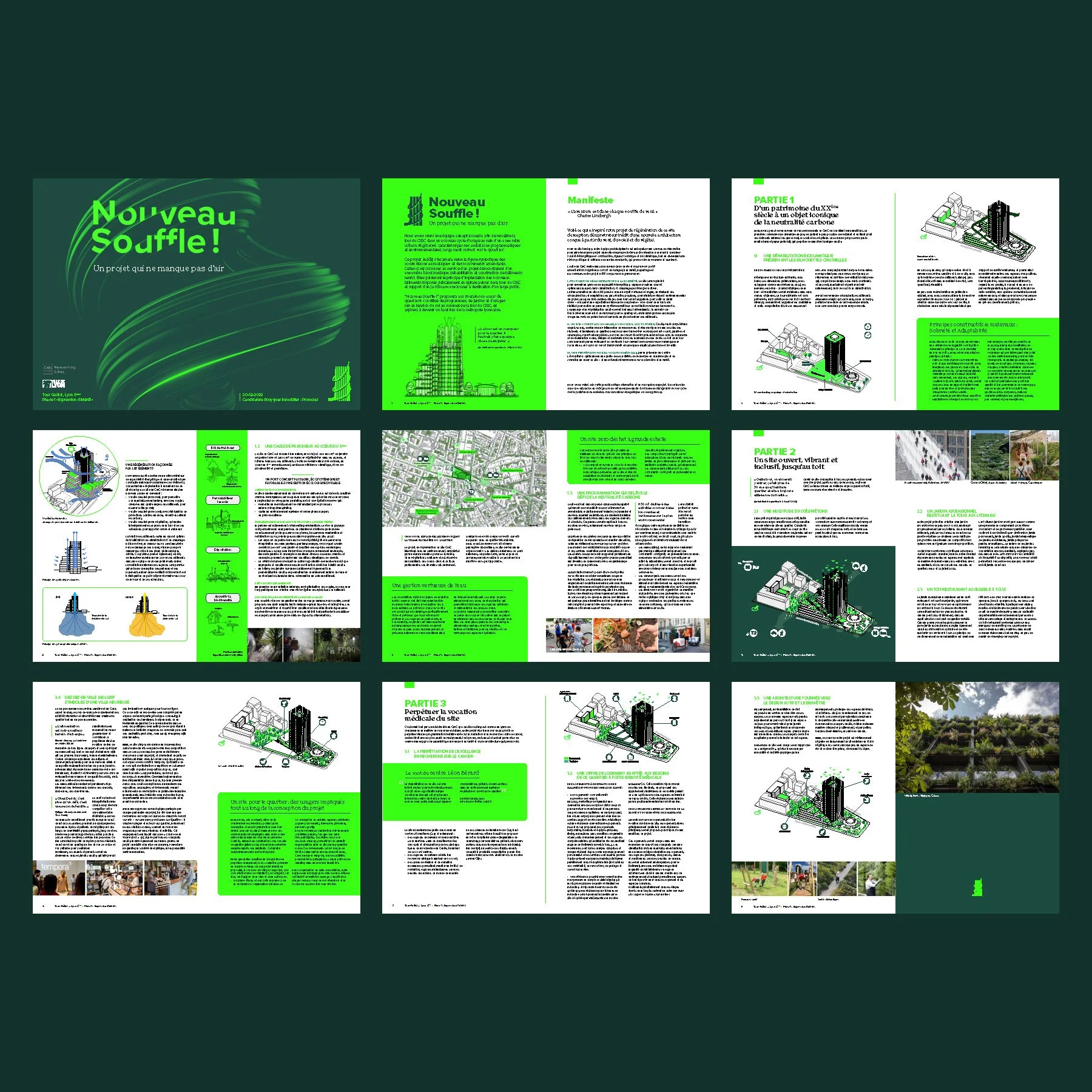 🌿💥 "Nouveau Souffle" ! Livret de présentation du projet de réhabilitation de la tour CIRC (Centre de Recherche International sur le Cancer) pour AIA Architectes qui propose un changement radical pour l'avenir de l’ancienne tour du CIRC à Lyon Gerland à travers une proposition vibrante de dynamisme et de durabilité. Chaque page du livret A4 illustre cette énergie avec l’usage de couleurs vives, des schémas didactiques et une mise page percutante.. #DesignImpactant #InnovationUrbaine